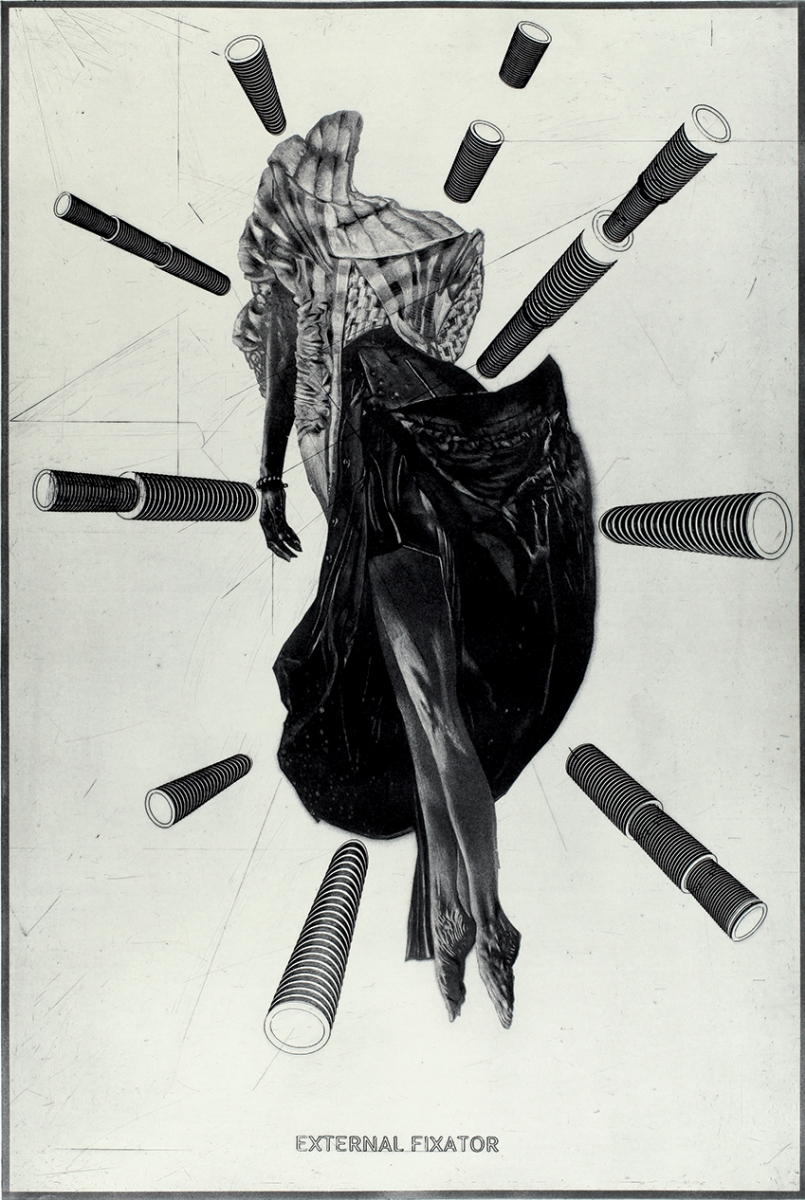 "Przez rok powstało kilkanaście grafik ściśle ze sobą powiązanych tematem i formą, co dziś pozwala mi rozmyślać o prezentowaniu ich razem jako jedną, dopełniająca się opowieść zatytułowaną Covid fixations 2020/2021. Na wystawie prezentowane są dwa cykle Stabilizatory i Warstwy ochronne. Warstwy ochronne zakłada się, aby coś przed czymś zabezpieczać, ratować, chronić, chronić siebie, coś w sobie. Jest to zatem opowieść o uniwersalnych, odwiecznych zależnościach: zewnętrznych naciskach i budowaniu odporności, a szerzej opowieść o bezsilności nie tylko wobec natury, ale też o pogardzie i o godności”.